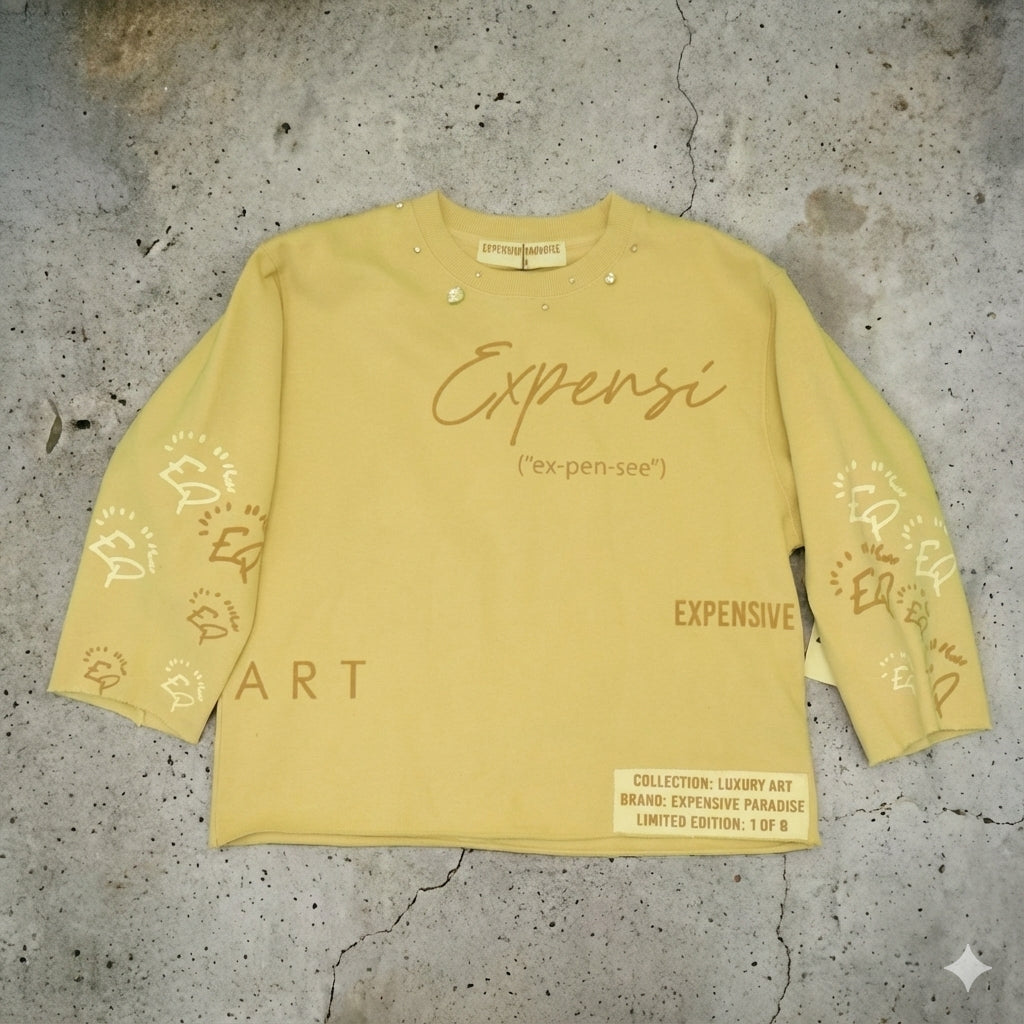Redefine your daily rotation with the Expensi "Definition" Crewneck, a standout piece from the exclusive 2468 Collection. Designed by Expensive Paradise, this garment isn't just clothing; it's a statement of luxury art. Featuring a unique chopped mid-sleeve silhouette and a sophisticated sandstone hue, it bridges the gap between high-end streetwear and contemporary art.
